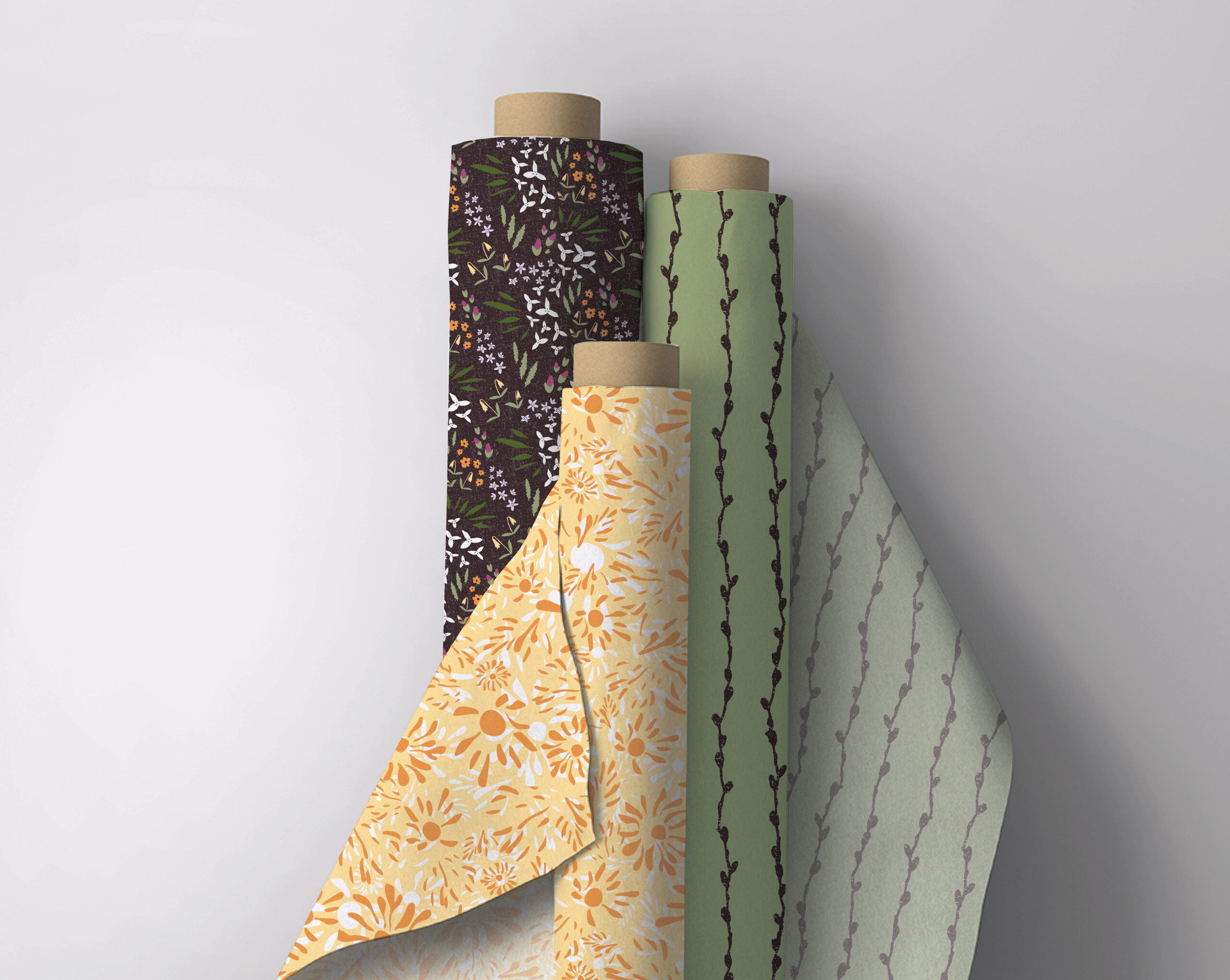 Check out my hand-drawn, nature-inspired surface pattern design portfolio.
